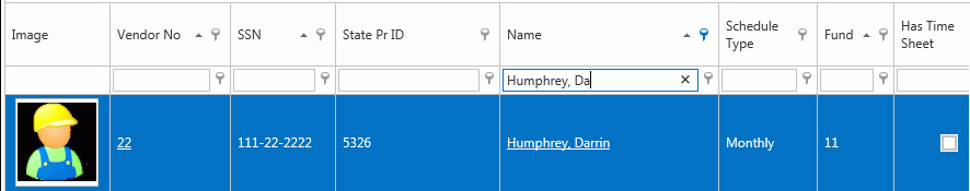 The Employee for which you filtered will then appear in the grid.