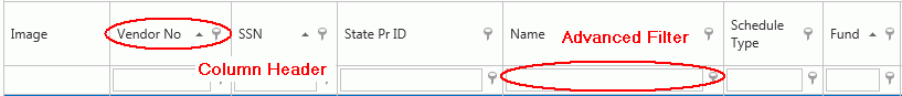 There are 2 different ways to filter a column in a grid. You can filter by Column Header or you can filter using the Advanced Filter.