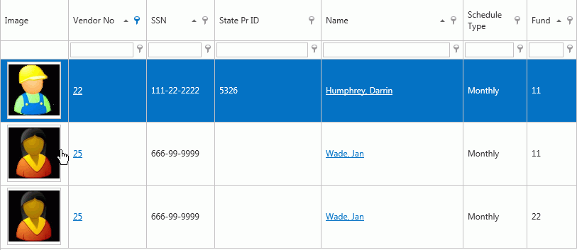 Now the grid is filtered for Employee's paid from Fund 11 with the Admin Process Group.