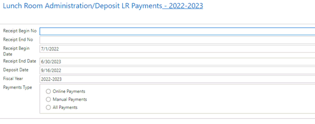 a. Lunchroom Payments: LR Admin/Tools/Deposit LR Payments