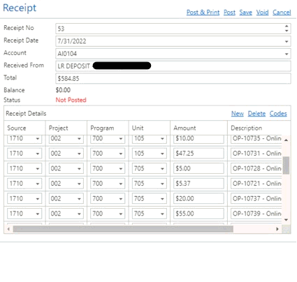 Step 4-Add the Convenience Fees to the Receipt in Treasurer.
